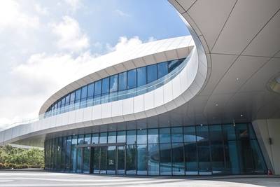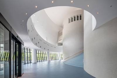 自行车文化探索馆建筑以圆弧的造型与流动线条诠释,这座中科园区崭新建筑地标,出自台湾第一位获得美国建筑师最高荣誉的建筑师潘冀之手。建筑的每一个角度呈现出不同的面貌,轻松的流动感很容易让人与自行车带着速度与自由感之特性连结,充分传达与文化之间的连结性。上方的天眼设计,巧妙带出自行车文化探索馆的探索之眼,曲线的外观与引入自然光线的大片落地窗与窗户,也是建物设计迷人之处。