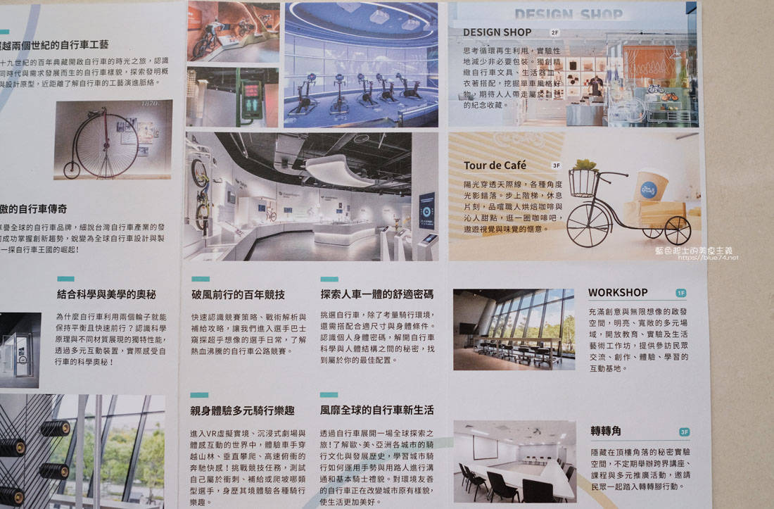 入内参观皆有专业的导览人员进行讲解,带领大家认识自行车的历史与变化,里面也展示各种功能的自行车与骑乘配备。互动体验可以骑上自行车,有登山车模拟挑战、VR虚拟实境、互动拍照、电动辅助自行车体验等。