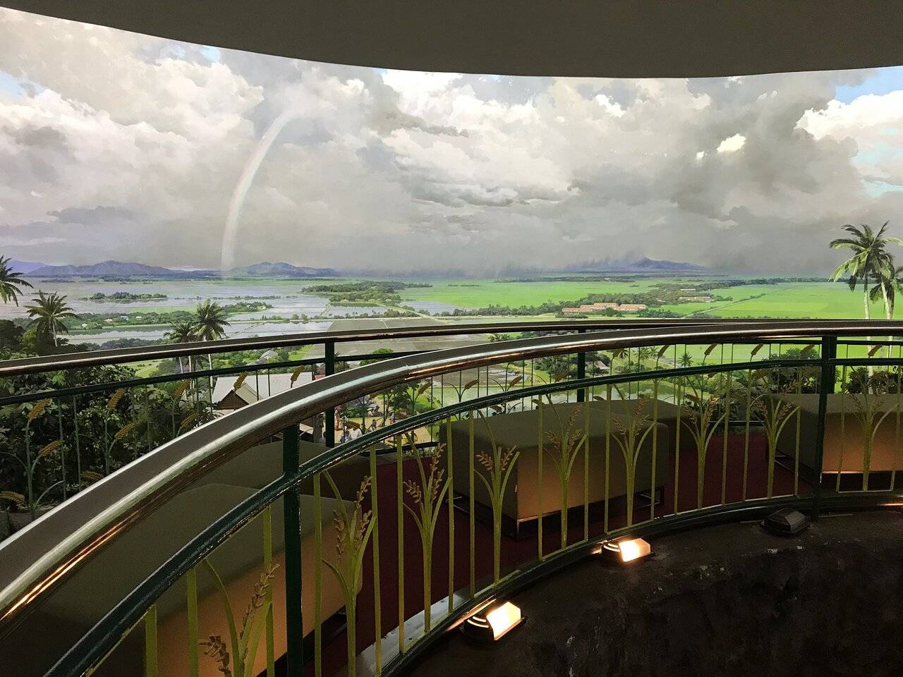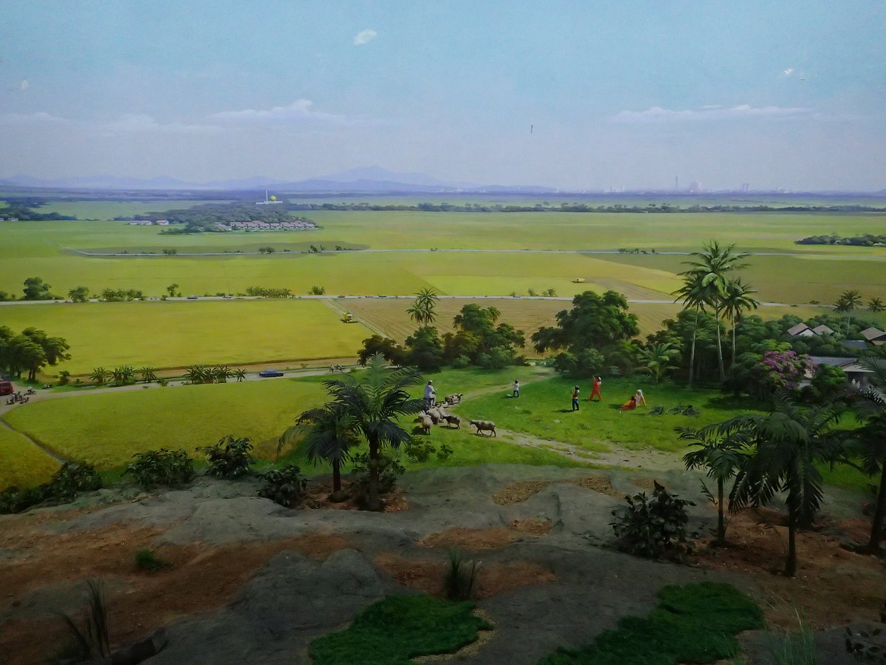 那真是视觉感官很好的壁画,立体感外,真实与虚凝的画作之间,把吉打州的风貌全然缩写入眼前。我们就让会转动的圆型观赏台慢慢的领我们绕完了壁画的整个空间。