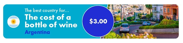 阿根廷葡萄酒是我们名单上每瓶成本最便宜的葡萄酒,以 1.32 美元的价格优势击败竞争对手。阿根廷的葡萄酒价格如此低廉,因为历史上葡萄酒生产商更注重数量而非质量,从而生产了大量价格较低的低质量葡萄酒。