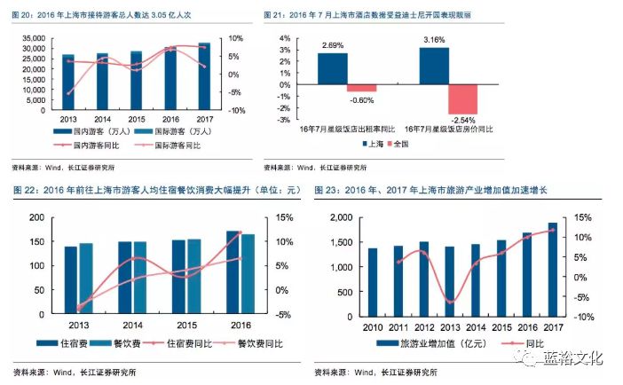 上海迪士尼2016年共接待游客560万人次,开园一周年共接待1100万人次。2016年国庆期间乐园游客对全市新增游客贡献为60.6%,2017年春节乐园游客对全市新增游客贡献为90.0%,积极带动了2016年全市共接待游客3.05亿人次,同比增长7.42%,高于2013-2015年CAGR达4.44pct。