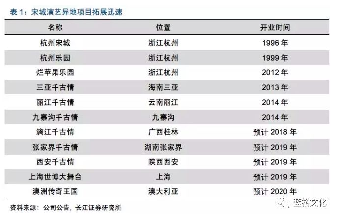 宋城演艺自2012年以来加快异地扩张的速度。目前已在三亚、丽江、九寨沟开设异地项目,同时规划及在建的还有桂林、张家界、西安、上海以及澳洲项目。且针对单一项目,公司可采取增加演出次数、开设二期剧院等形式增加游客承载量。