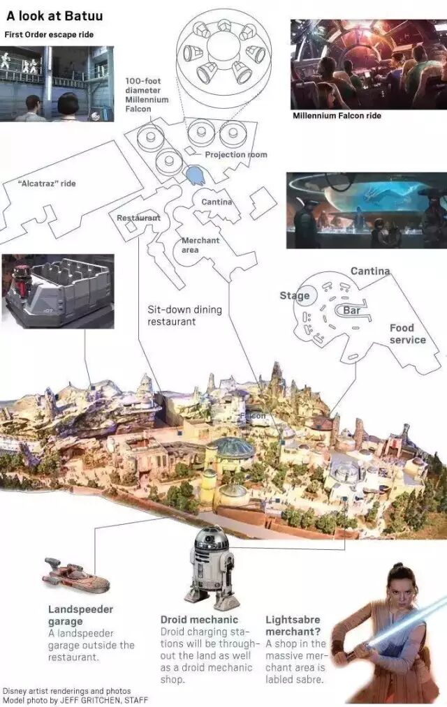 据说“星球大战:银河边缘”将会分期开业,先是开千年隼和相关的商业餐饮设施。其他将在2019年末或2020年初随着“星球大战:抵抗组织的崛起”上映后再开。所以大家还是计划好时间再去一睹为快了。