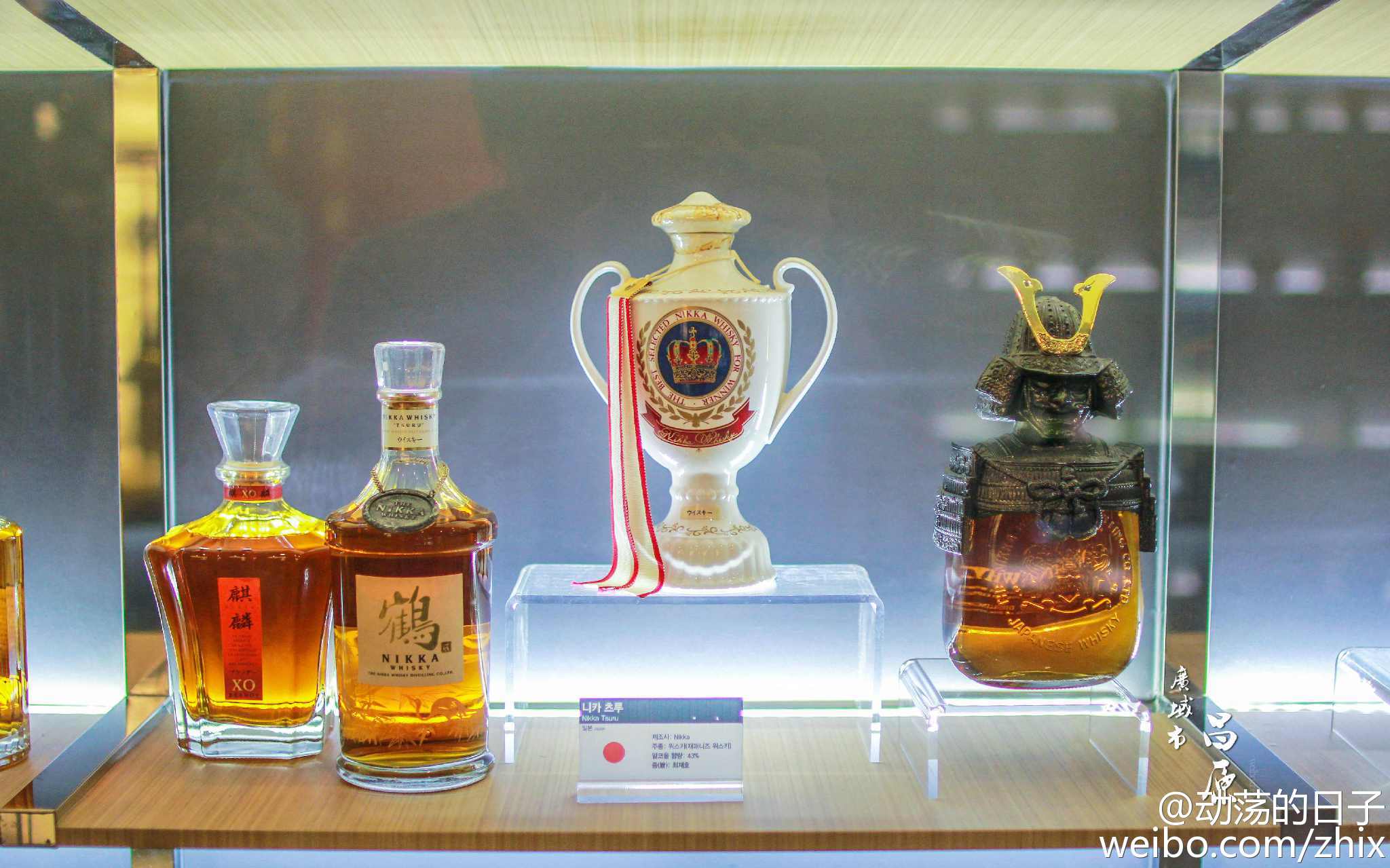 这个可金贵了,路易十三。 被称为世界上最贵的干邑白兰地。路易十三采用巴黎Baccarat世家手工制作的水晶瓶,瓶身刻有巴洛克风格的百合花纹,瓶盖及瓶肩镶有24K纯金雕饰。博物馆的解说说馆里这瓶大概400万韩币左右,差不多约两万多人民币。还有报道说,完好的这种酒瓶一个就值两千块!那得买多少瓶二锅头......