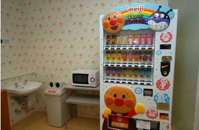 ↑婴儿室内的自动售货机,比照幼儿身体设计,就连饮料盒都比一般的小,适合孩子的小手拿握。