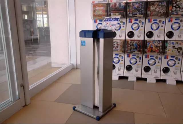 ↑为带孩子和身体状况不佳的顾客准备的婴儿车和轮椅设置于大门的入口附近,下车即可利用,最大限地减轻特殊顾客的体力负担。旁边放着消毒纸巾,用于擦拭婴儿车。