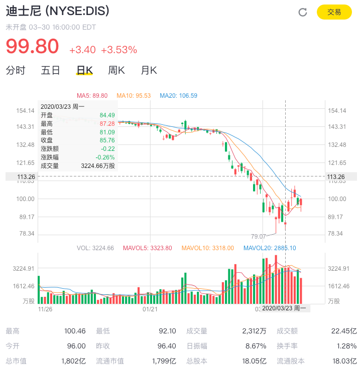 主要业务深受打击,拥有96年历史的迪士尼股价也随之受到重挫。