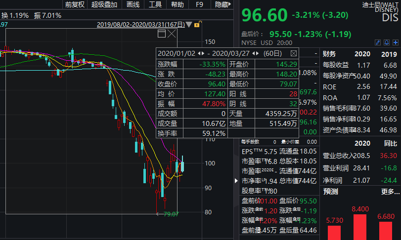 3月19日,迪士尼发布盈利警告,指新型冠状病毒传播可能引致消费者行为改变,进一步扰乱公司业务。疫情亦令其难预期业务表现,尤其是中短期内。