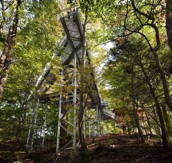 “站在树梢上”让人以一种新的视角看世界,历史悠久的建筑技巧来增强大自然的戏剧效果——通过打开广阔的视野,去压缩焦点,其结果是一个对年轻人和老年人都有不可抗拒吸引力的空间。