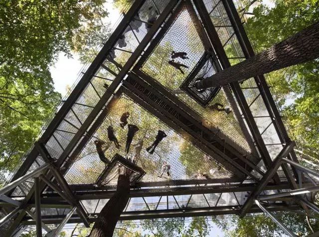 游客们最喜欢的是“松鼠攀登”,这是一种悬挂在离地面50英尺高的露天攀爬装置,游客们可以在林冠上玩耍和休息。