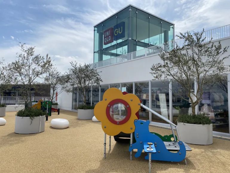 除了零售店板块,“社区公园”的打造是这家店的另一惊喜之处。据悉,优衣库计划在这家店的屋顶打造了不同的游乐设施以及可供休息的绿化空间,比如Jungle Gym(攀爬架)、滑滑梯等可供小孩玩耍的地方,让家庭消费者可以在购物之余享受放松玩乐的体验。