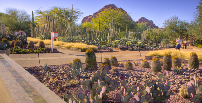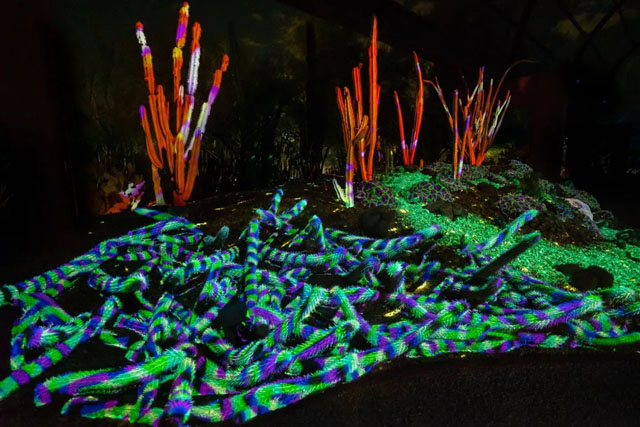 在凤凰城的沙漠植物园就利用投影灯光为游客展示夜间沙漠植物充满生机盎然,如同在海世界一样的魔幻沙漠。