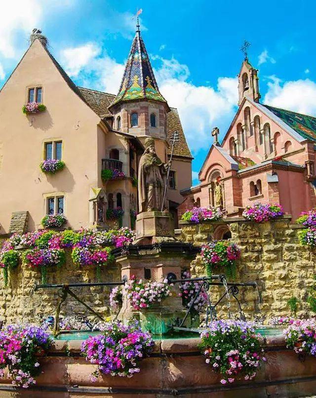 整个科尔马小镇充满了童话气息。而且“小威尼斯”是科尔马最为精华的一部分,一条运河穿流而过,水面映满了属于小镇的色彩。开满鲜花的橱窗上偶尔掉落的花瓣,花船穿过细窄的河道留下的印痕,都让科尔马多了几分精致和灵动。