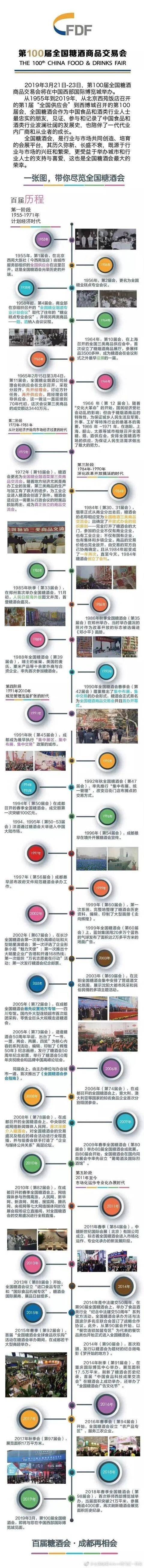 全国糖酒商品交易会始于1955年,由中国糖业酒类集团公司主办,是中国历史最为悠久的大型专业展会之一。每届糖酒会的展览面积均在20万平方米以上,是中国食品酒类行业规模宏大、影响深远的展览会,人称“天下第一会”。