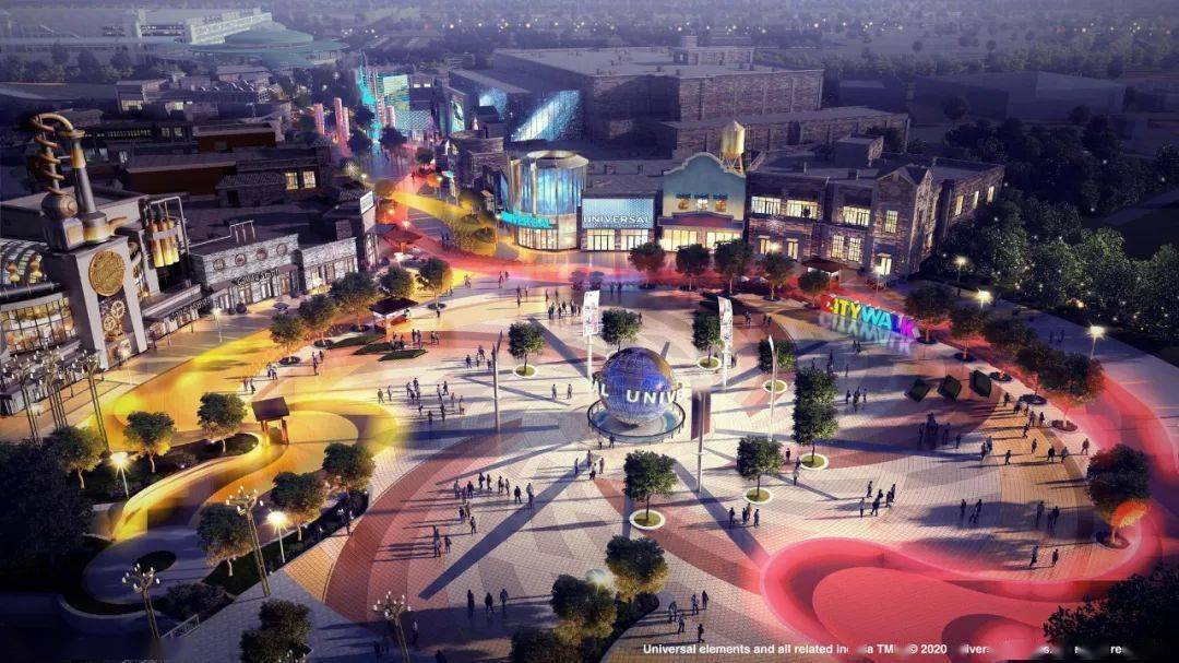 前些日子,北京环球影城官方公众号披露了环球影城城市大道的效果图及部分店铺。 据说这条城市大道借鉴了中国文化与东方美学,有红黄两色的两条地砖贯穿。在灯影的辉映下,如双龙戏珠般交汇于环球地球标志周围,让游客不知不觉从现实走向梦幻,从中国风情走向充满欢乐、冒险与幻想的主题乐园。
