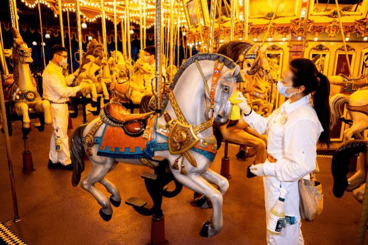 健康及安全措施 乐园各处的排队区、餐厅、游乐设施以及其他设施,都会实施社交距离措施。