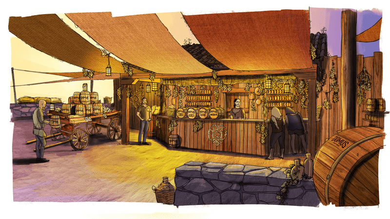 设置:这个小市场将重建有工匠和销售点的中世纪场景。