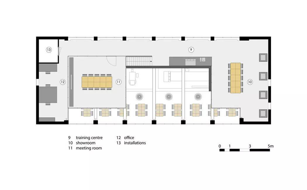 虽然底层是咖啡店,咖啡吧和餐厅,但第一层设有咖啡师培训中心,展厅,办公室和Capriole咖啡厅的会议室。
