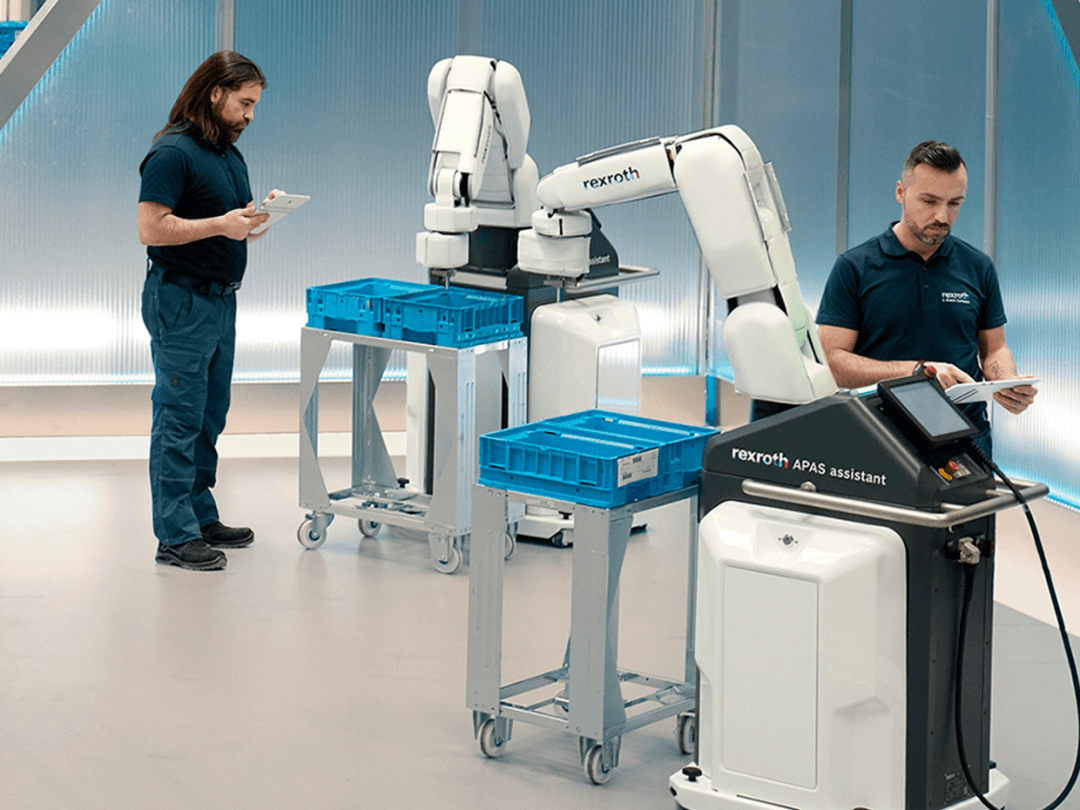 APAS —— 协作生产助手。在装配阶段,使用协作机器人的趋势愈发明显。凭借独特的传感器皮肤,APAS 助手不需要在周围设置安全防护栏。它们能够探测到人类,并自动切换为安全模式。用户可以将它们集成到生产线中,或者作为移动设备灵活部署。机器人可减轻员工的负担,在物理流的最后一公里创造新的可能性,从而使现有物理流实现自动化。通过高精度的图像处理技术,APAS 助手经过简单的教学过程便可以识别各种产品,完成高效率的处理或简单的质量检查任务。