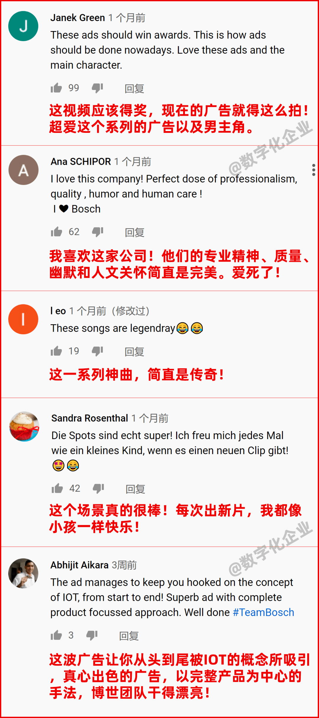 《来个博世》物联网系列个个爆火,在Youtube上都是百万、千万级别的播放量。而Bosch Global在Youtube上的订阅用户也不过区区4万人,能获得超粉丝几百倍的流量,足见视频本身和品牌自身的“产品力”有多么强大。