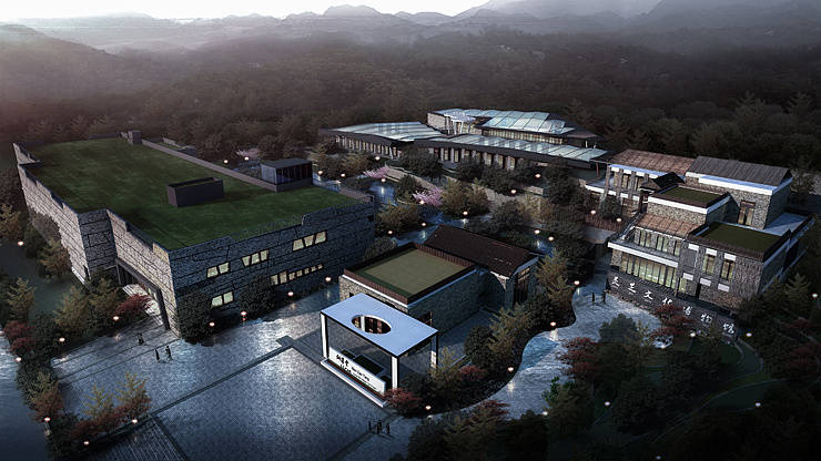 在广西当地城郊的河边山坡上,充分利用地形,将8米多的高差变成优势,形成独特的立面效果,空间在迂回婉转中变得份外有趣,充分融入本土文化、民族木质结构建筑、当地特色材料,用现代技术还原古朴的自然风韵,让仙草堂灵芝创意产业园成为融安的一张有着浓郁生态气息的独特的名片。