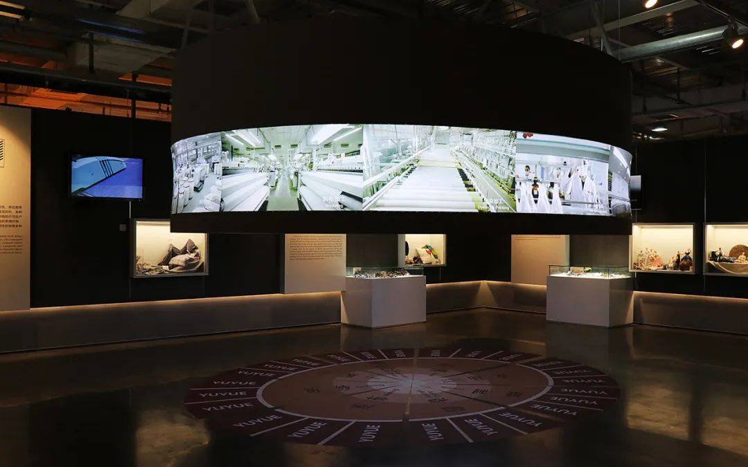 滨州愉悦家纺居家世博馆,首先明确了作为企业展馆要向商务洽谈伙伴、政府及相关机构人员、交流学习来访人员展示公司精神理念、综合实力及产业链优势,作为体验馆让观光游客感受纺织的艺术与技术。