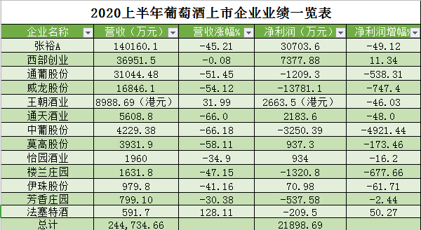 2020年,作为非生活必需品的葡萄酒,面对疫情肆虐的上半年,交出了什么样的成绩单?截至2020年8月31日, 蓝裕文化酒庄规划设计院了解到,全国13家葡萄酒上市企业2020年度上半年业绩报告已悉数发布。