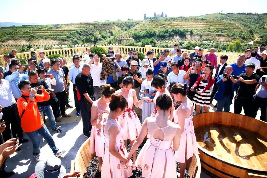 踩踏葡萄酿酒最早起源于欧洲,是一种传统而古老的葡萄酒酿造方式,还是一种庆祝葡萄丰收的传统仪式。在开庄迎客这一重要的日子里,安诺酒庄决定重现这项仪式感满满的场景。在欢快的乐曲中,少女们赤脚登场,把木桶里刚采收下来的葡萄踩踏破碎,现场顿时果香四溢,围观的来宾们连连赞叹。