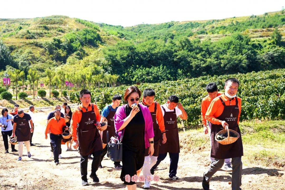 仪式结束后,来宾们对神秘的安诺酒庄进行了参观,一睹安诺酒庄的全貌,参加了采摘、品鉴、踩踏葡萄等活动。酒庄占地1200余亩,庄园内拥有水域面积150余亩的大雁湖;酒庄主体建筑汲取西班牙风格,内部精致装修,大到一步一景,小到一器一物,执着演绎不凡匠心。