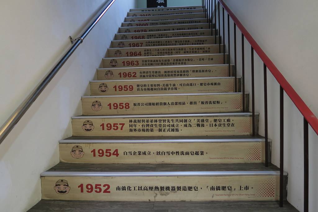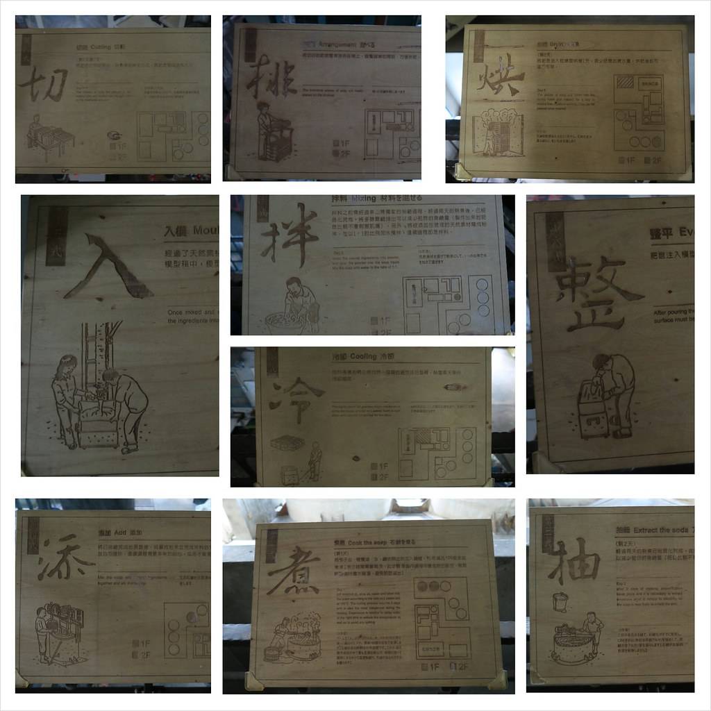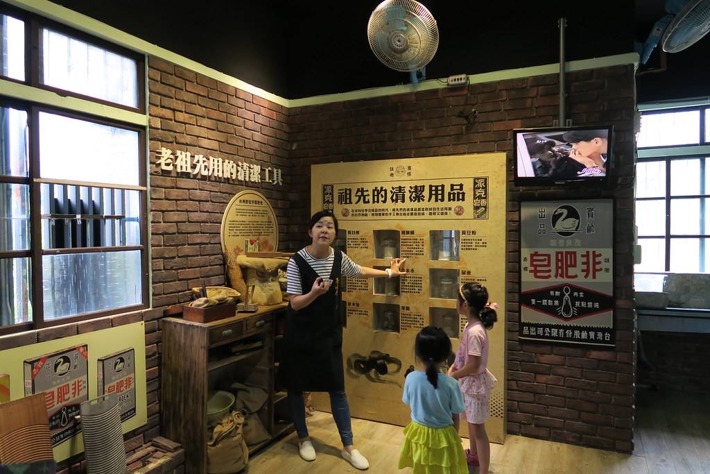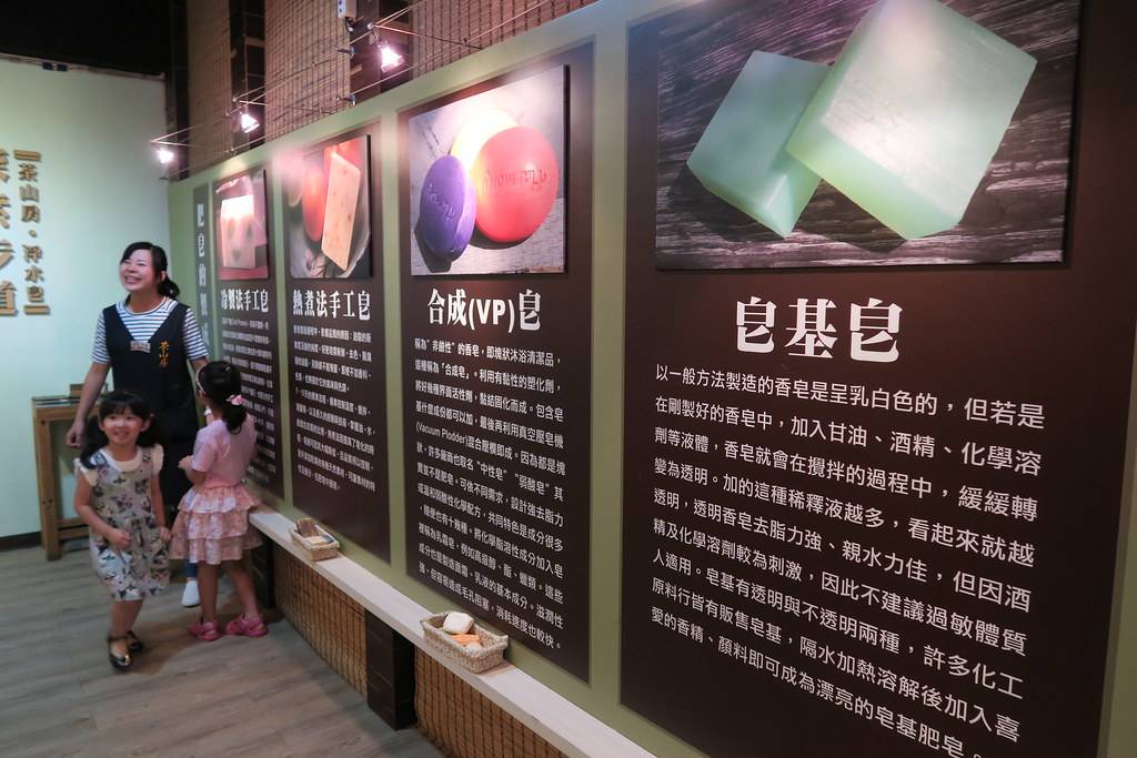 茶山房肥皂文化体验馆是由原本旧厂房改造而成的观光工厂,上下两层以空中步道穿越工厂上方,让游客可以从高处全览制作过程全貌。茶山房肥皂文化体验馆内分为五大区域,配合工厂导览员的仔细介绍,在生动有趣的过程中深入了解传统手工肥皂的诸多优点。