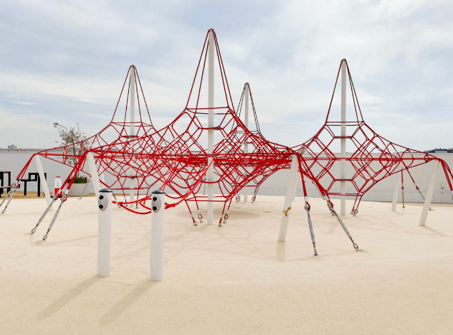 主题公园顶处的攀岩网