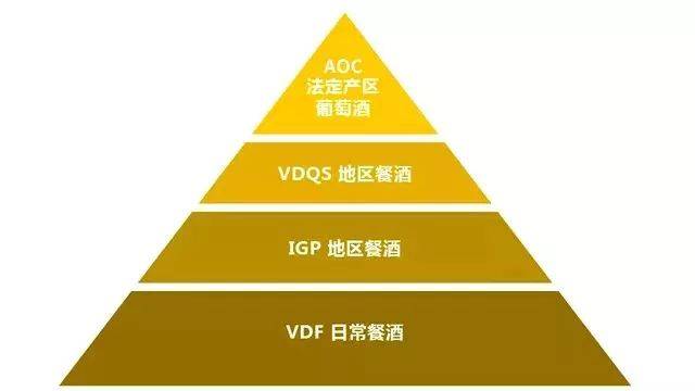 注:2009年法国进行改革,AOC被更新为AOP,但是只是称呼上的改变,意思并没有变。VDQS这一等级在2011年被正式撤销,所有的VDP和VDT葡萄酒分别被IGP和VDF取代。