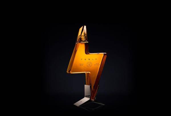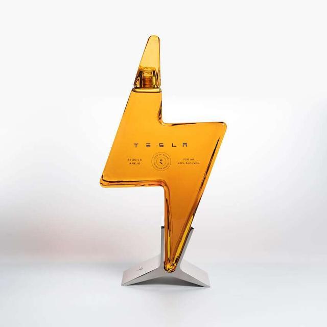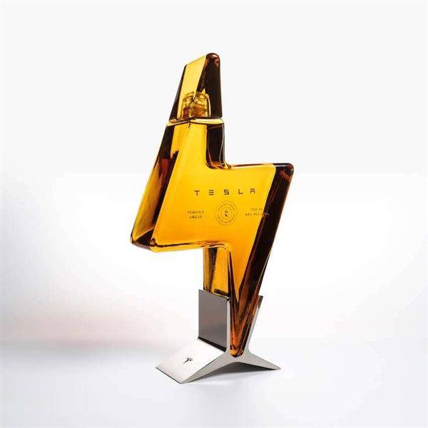 Tesla Tequila玻璃瓶身形如充电符号,酒精浓度40%,容量750毫升,在美国部分地区出售,预计2020年年底发货。