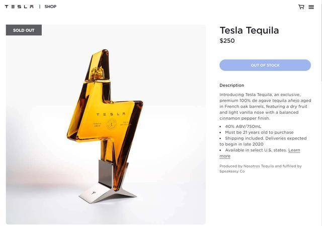 现在,特斯拉真的开始行动,在官网推出了其龙舌兰。遗憾的是,Teslaquila(特斯拉龙舌兰)已被注册,特斯拉无法使用其作为商标名字,当前这款酒的名称为Tesla Tequila。