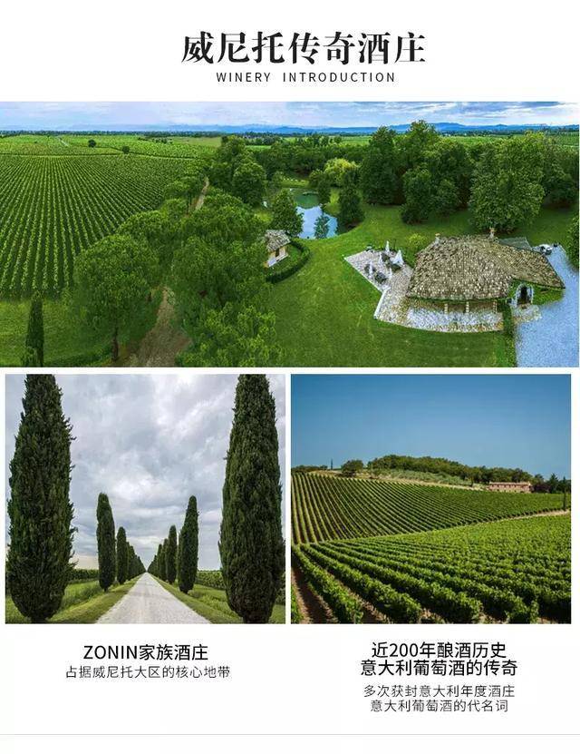 Zonin当之无愧是意大利最大的酒庄,它的11个葡萄园遍布意大利几个大区,甚至开拓到了美国,在美国大陆也拥有1个葡萄园。在意大利的葡萄园占地3700公顷,其规模不仅是意大利私有公司占地之最多,在整个欧洲都名列第三。
