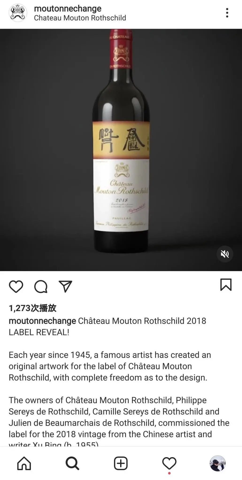 他说:“当我发现徐冰时,我被他迷住了,他发明了一种充满诗意的符号。然后我对自己说,我们的酒标也是一种标志,每年都有一件艺术品:1973年的年份也可以称为毕加木桐,2018年的年份将被称为‘徐冰木桐’”。