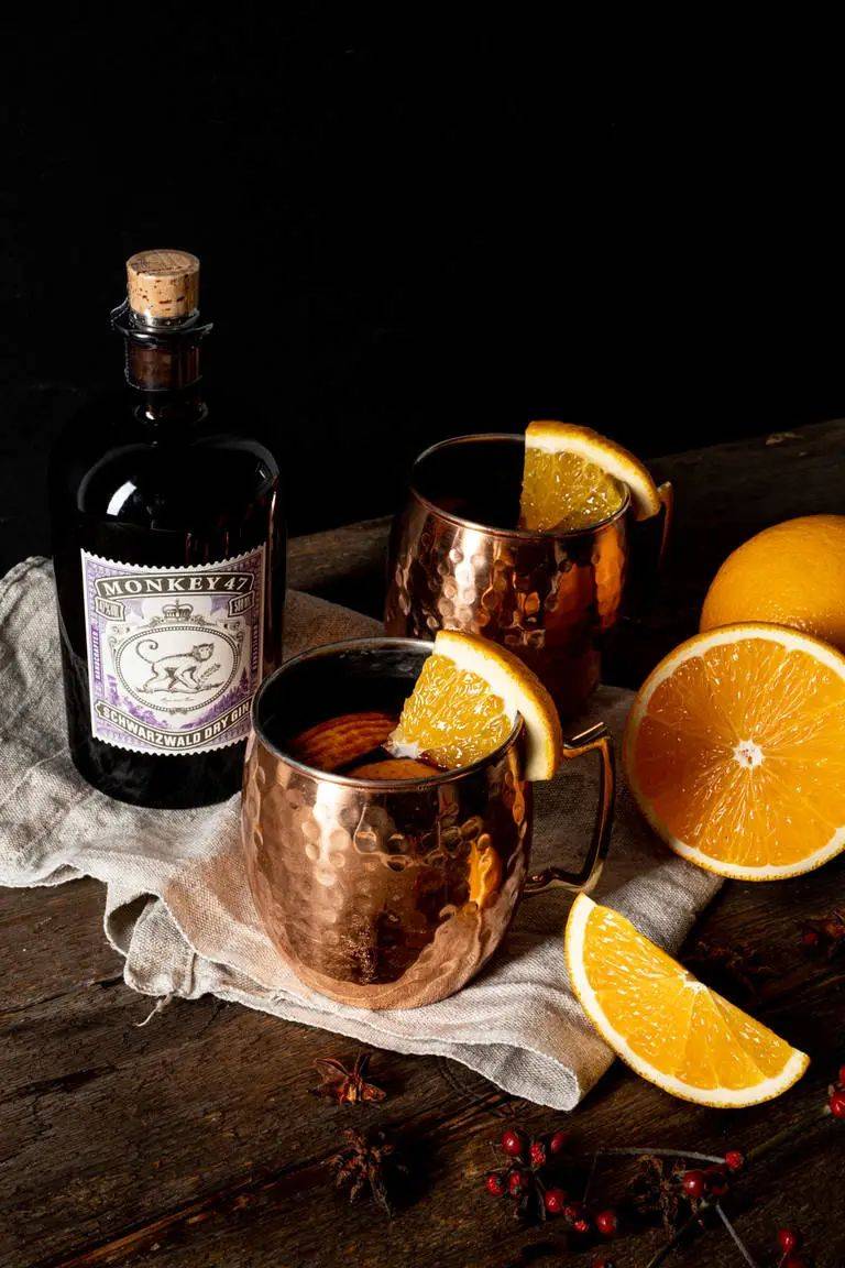 2. 重口版:香料金酒这种做法,在圣诞季非常受欢迎。先用金酒加苹果、蔓越莓或葡萄柚等果汁的组合来替代葡萄酒。加入一些柑橘风味和香料,甚至是迷迭香这样的草本,再一起加热,你的冬日节庆鸡尾酒就准备好啦,用它来散播欢乐吧!
