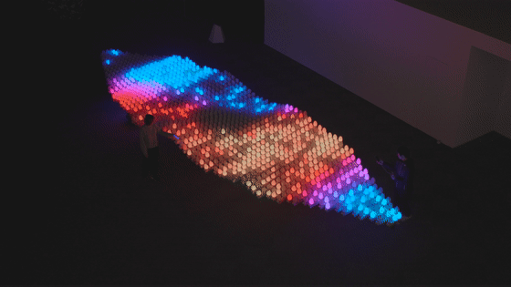 通过特定的传感器,观众在这个互动空间里,以一呼一吸的互动方式与“光之呼吸”融为一体。