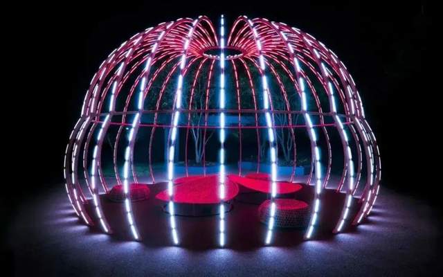 《流》Wavelet是艺术团队GeeksArt打造的一件互动灯光艺术装置作品。用光的变化模拟了“流水”的趣味,并增添了一丝浪漫色彩。