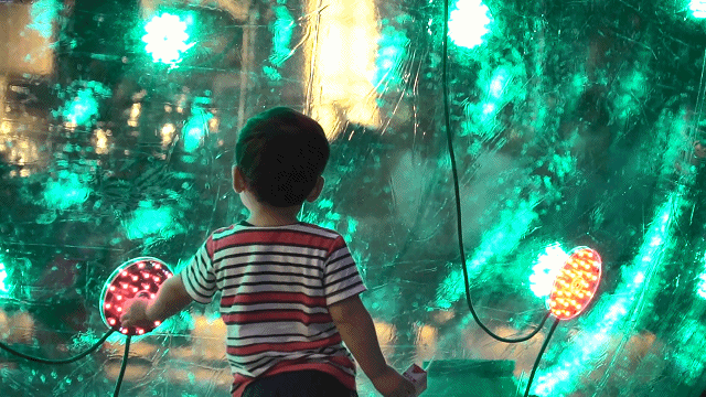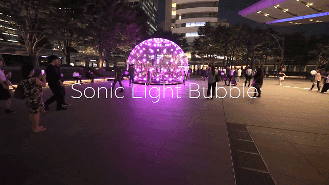 Sonic Light Bubble 是一个直径长达六公尺的透明充气泡泡球,泡泡上面布满了一系列的LED灯盘,如同会呼吸的单细胞生物,人们在触碰之时它会以光点和声响回应,为城市带来360度的视觉盛宴。